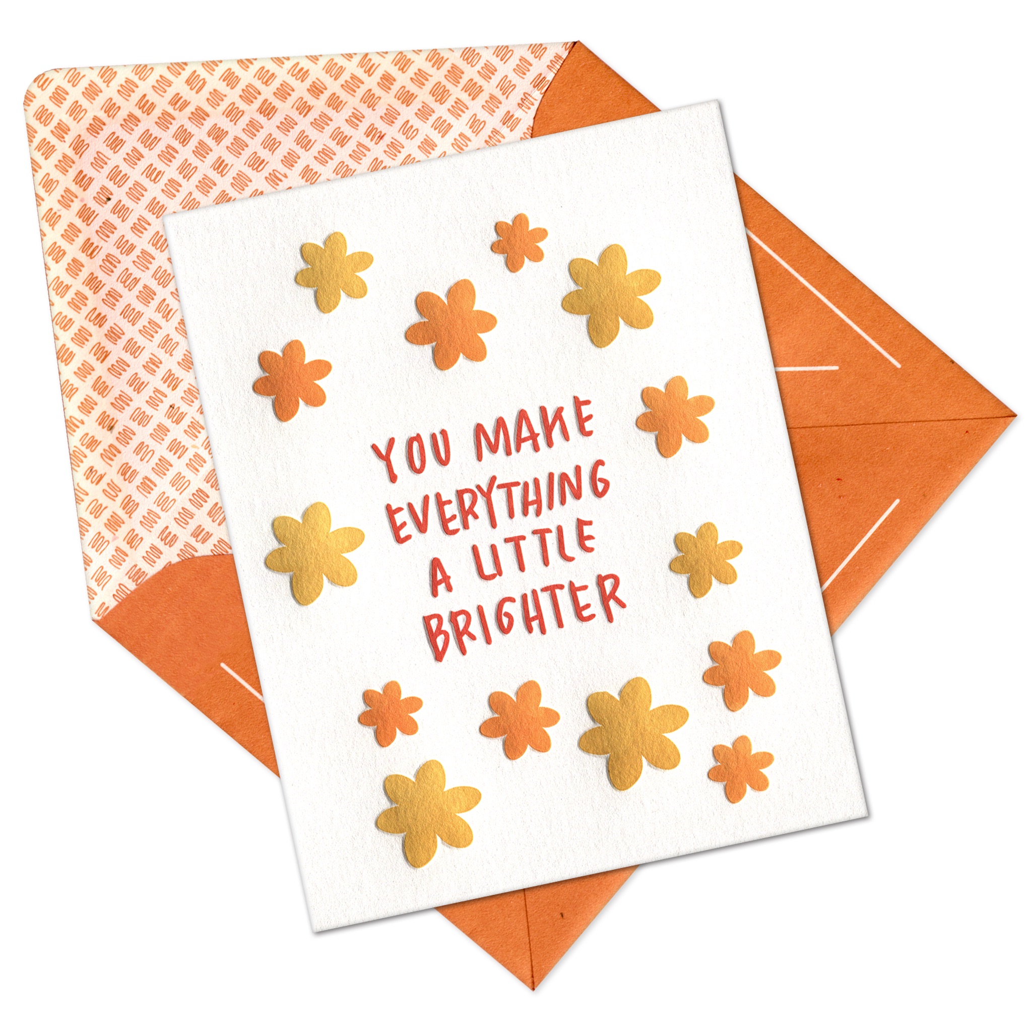 With it’s 1970s-inspired color palette and hand-drawn florals, this card radiates warmth and sunshine– and what better way to let someone know how much light and vibrance they bring to the world? From thinking of you to friendship to encouragement, this card is perfect for sending year round.