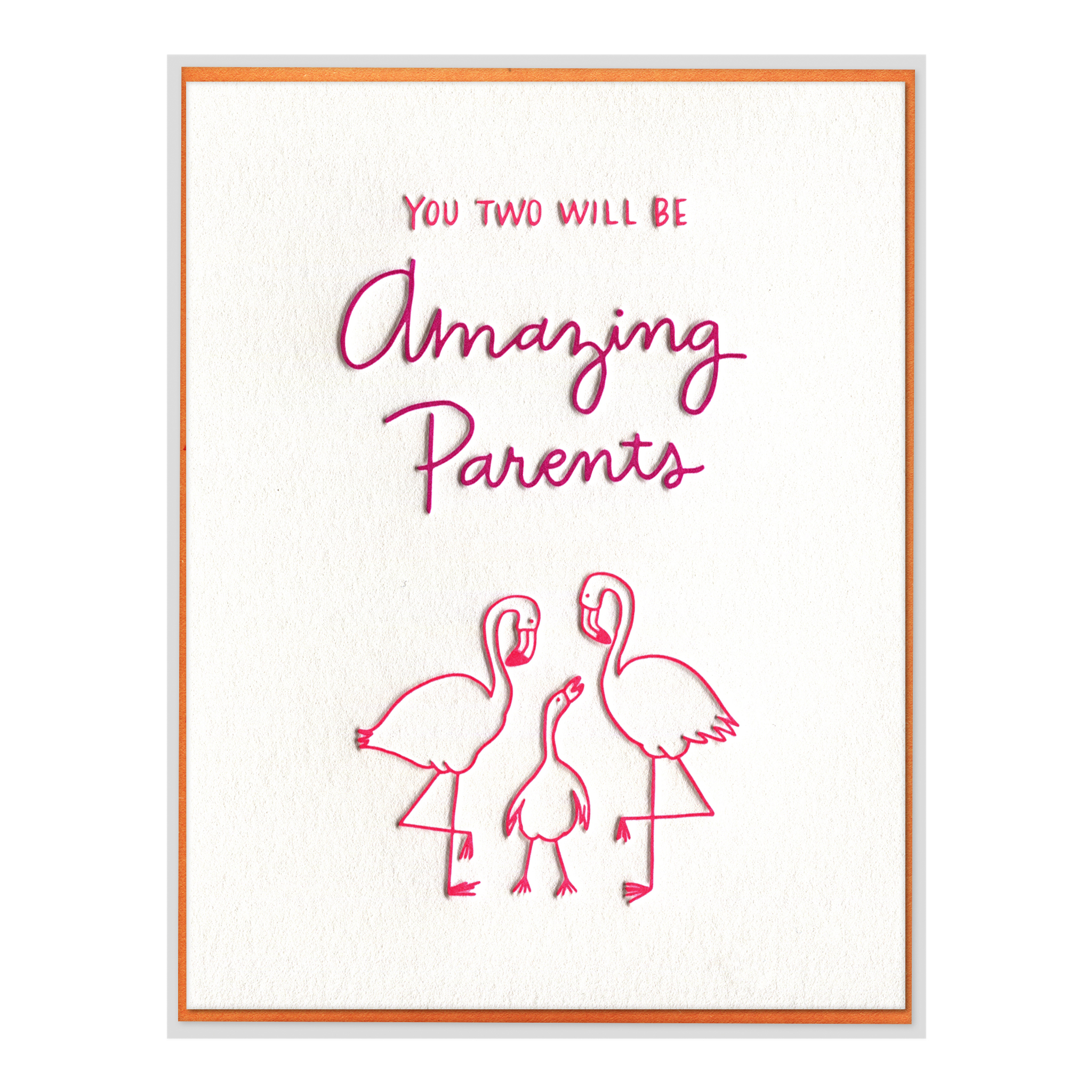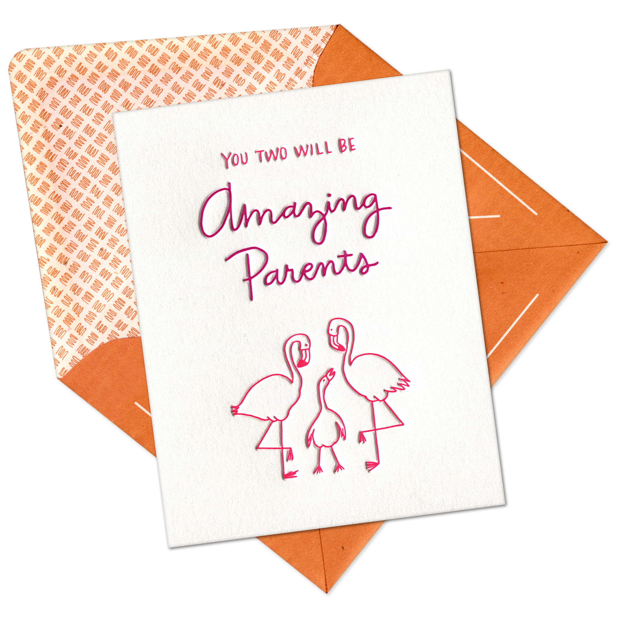 For that couple you know will be the BEST parents, send them a note of love and encouragement with this charming card. Fun fact: Both flamingo parents help to build the nest, and both take turns sitting on the egg until the baby hatches. (Talk about doing that parent thing together.)