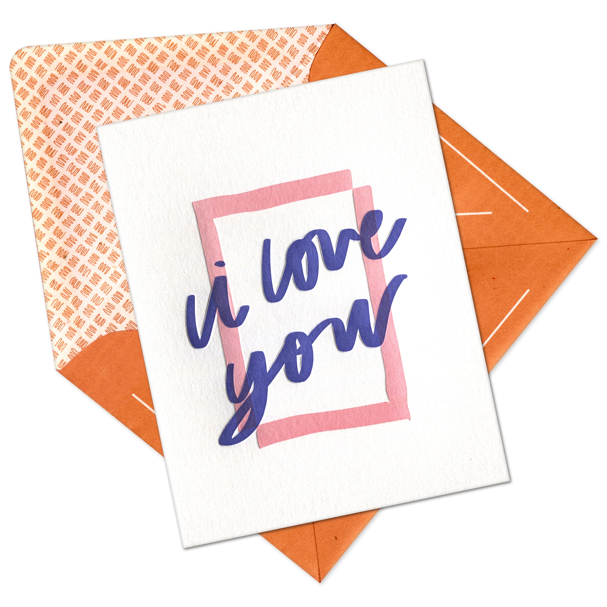 “I love you” is a simple phrase, yet so powerful! The modern, hand-lettered script in a blue-violet ink makes a bold proclamation of love– perfect for anniversaries, valentine’s day, or just because.