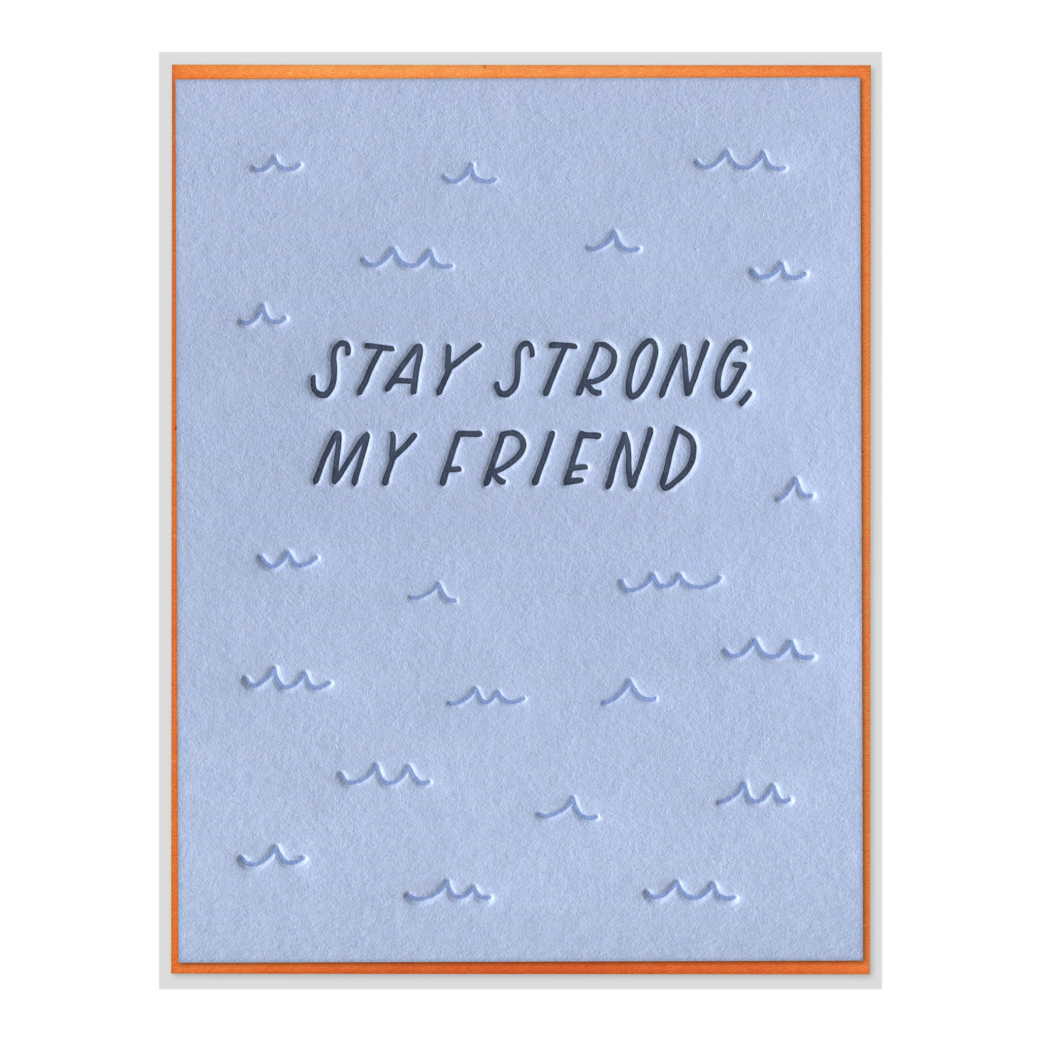 Life brings plenty of ups and downs, and this letterpress card is for your friend who could use that extra bit of encouragment that comes from a handwritten note. A reminder to stay strong and not to give up, the hand-lettered sentiment is set against a subtle wave pattern.