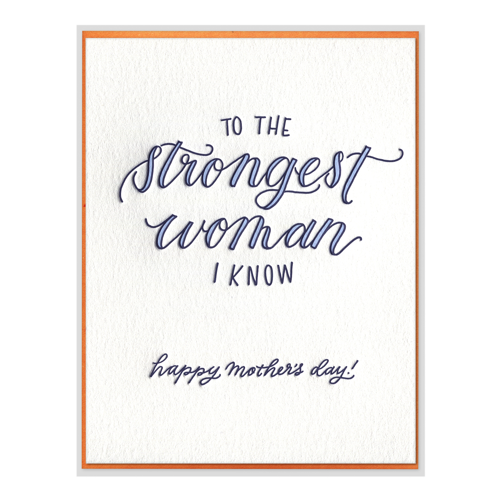Mom– the stongest woman! Celebrate her strength with this letterpress Mother’s Day card.